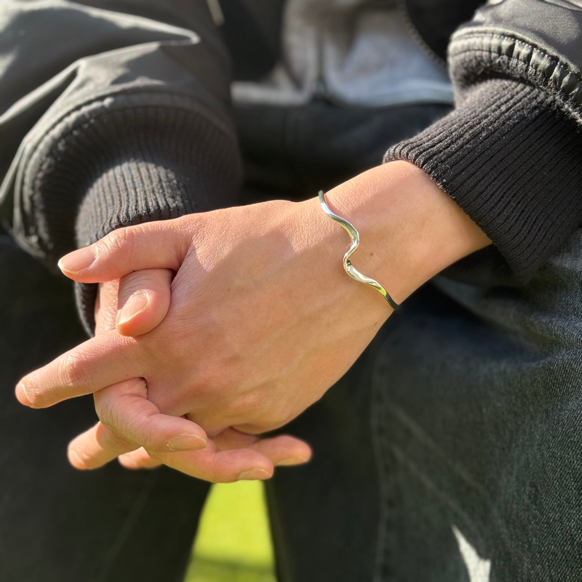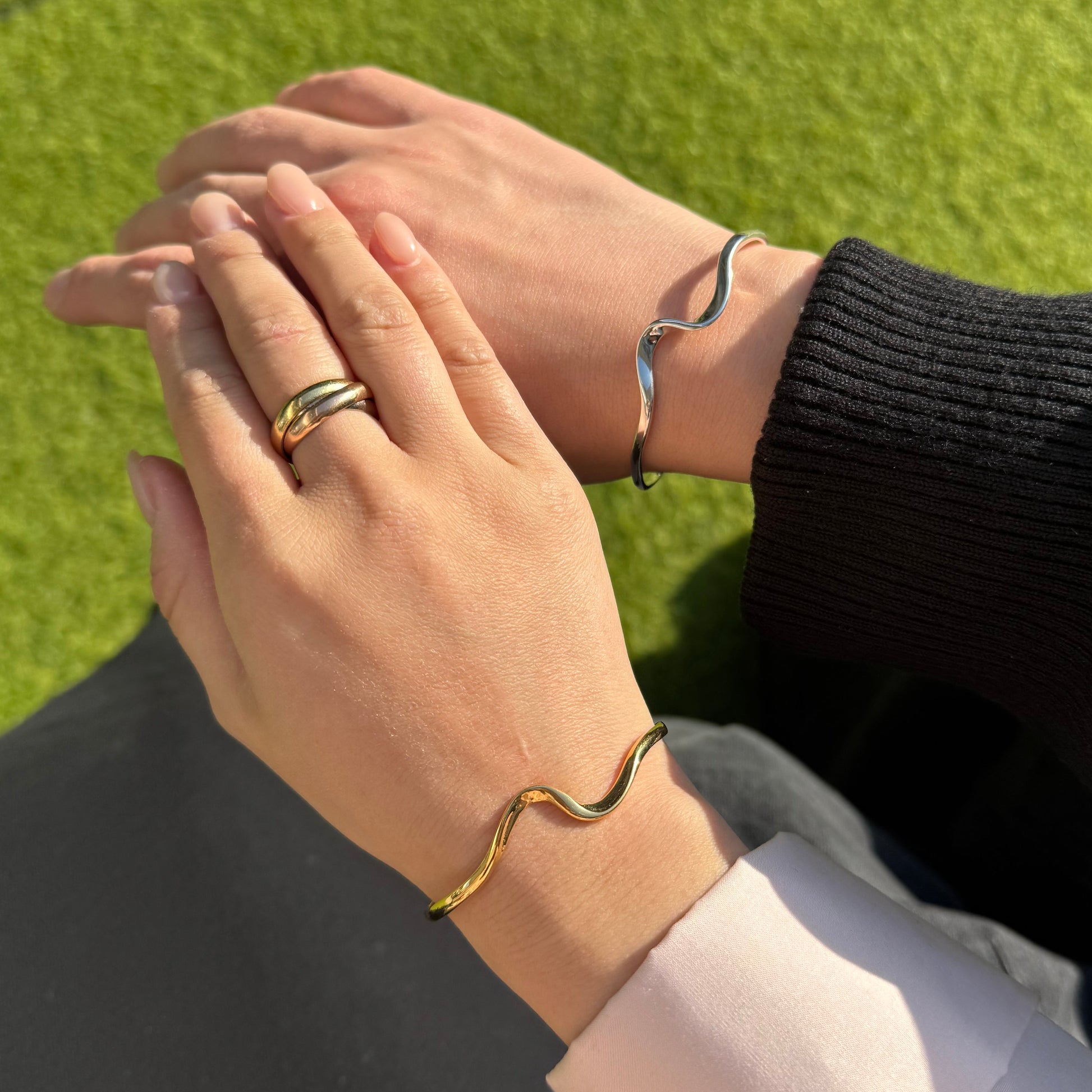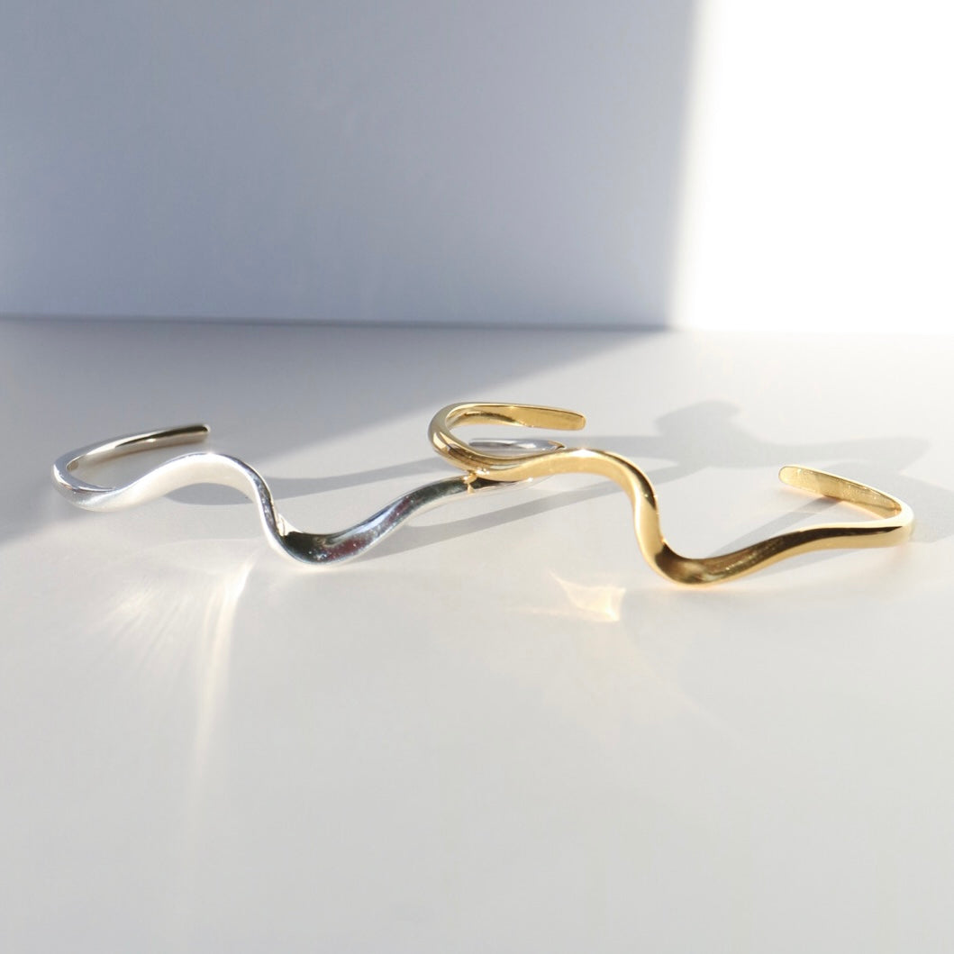 波からインスピレーションを受けた造形が静かに寄り添うバングル。