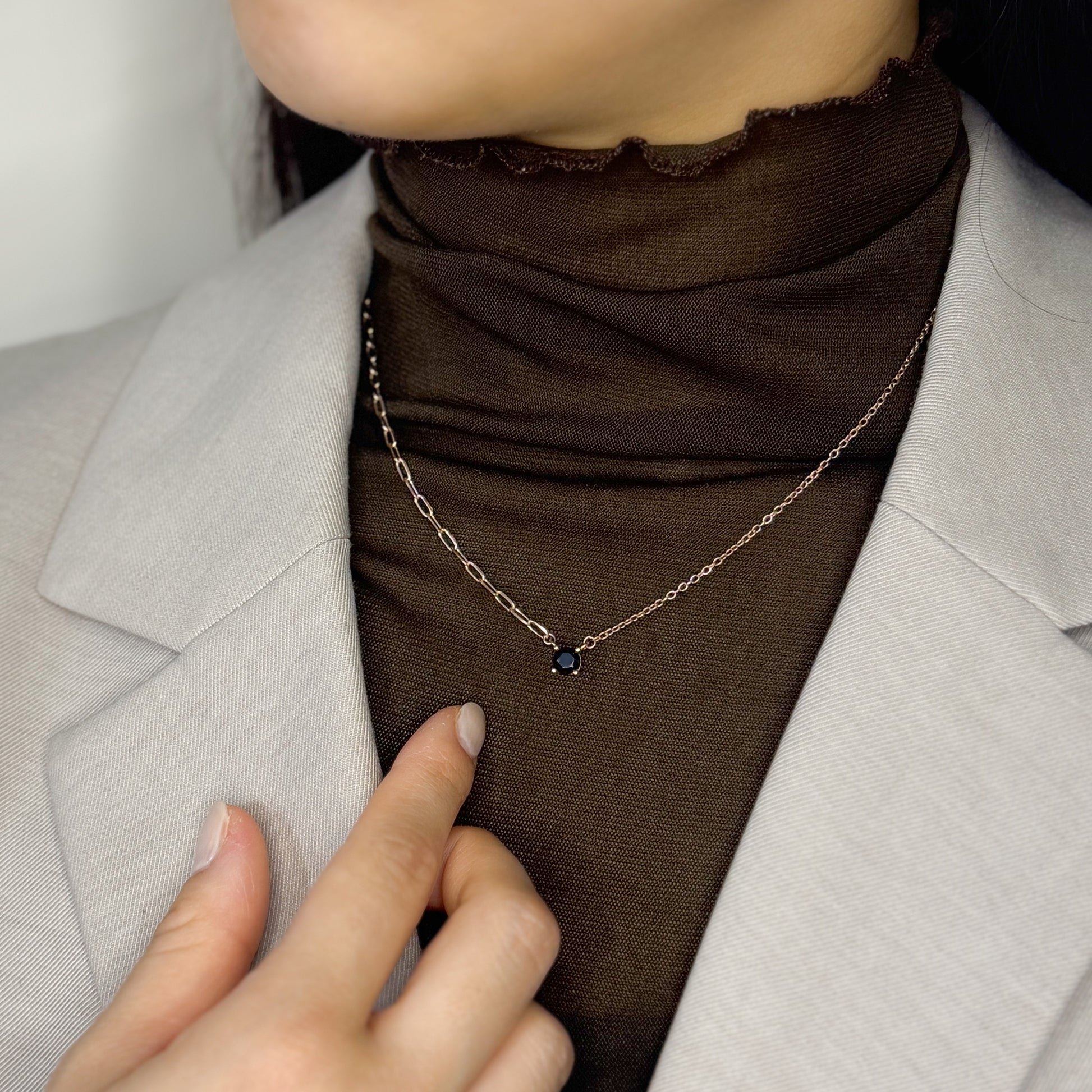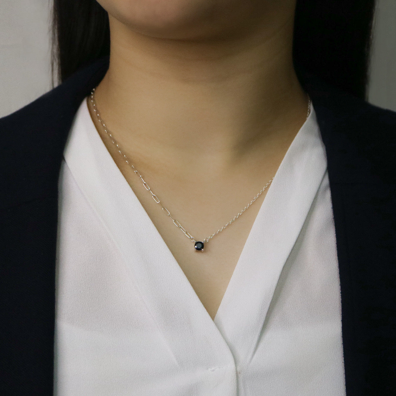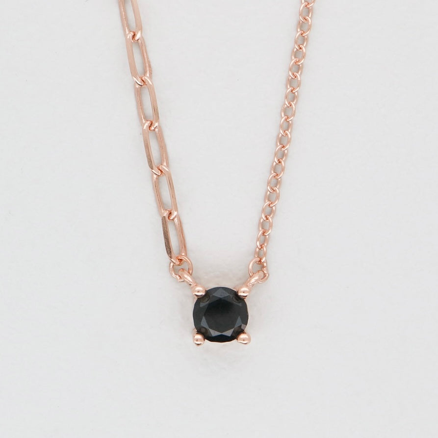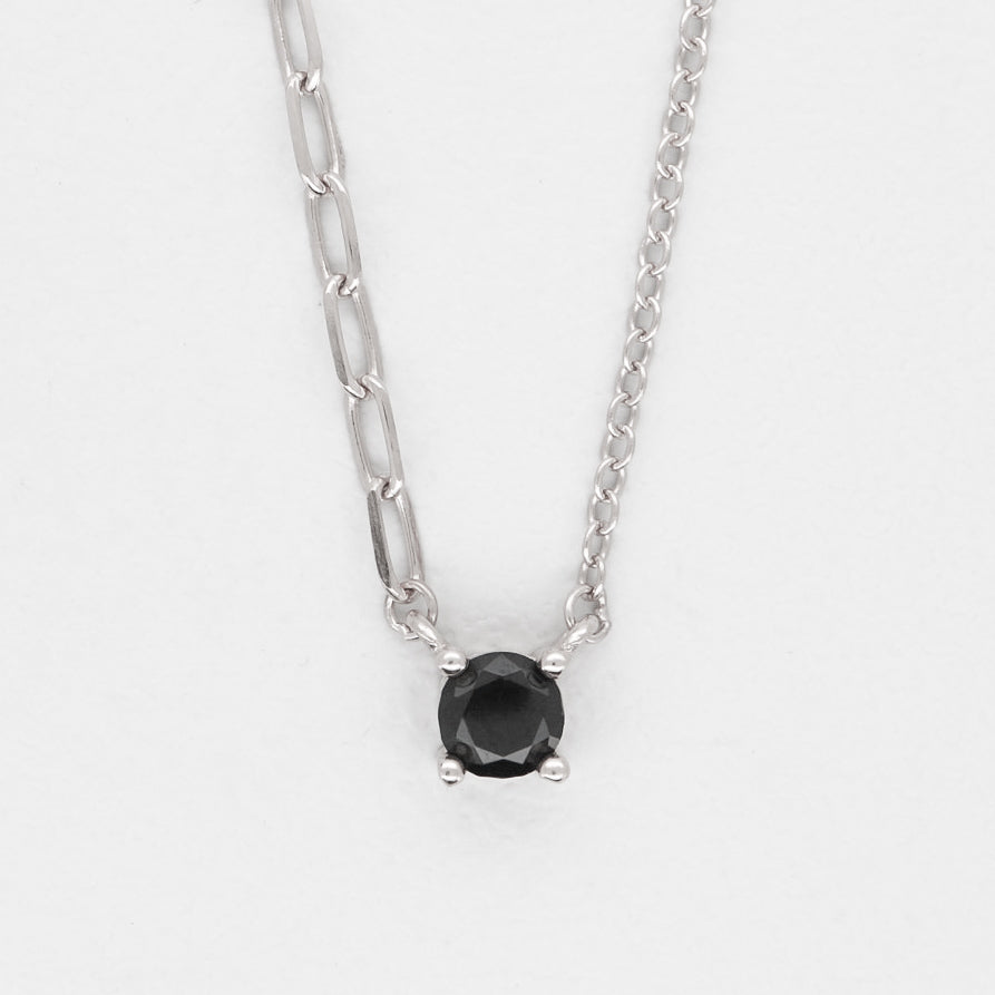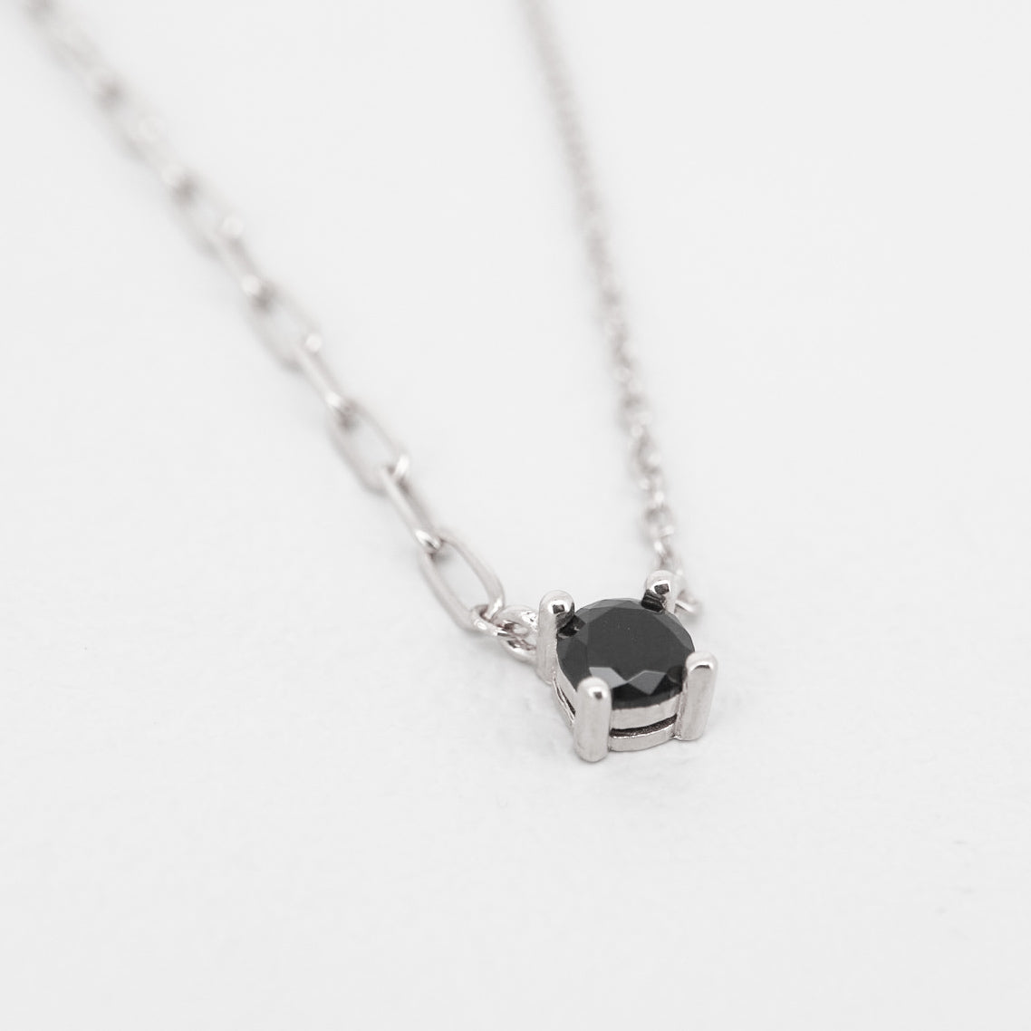 ネックレストップには眩い輝きを放つ1粒のキュービックジルコニア(ホワイト/ブラック)を添えました。